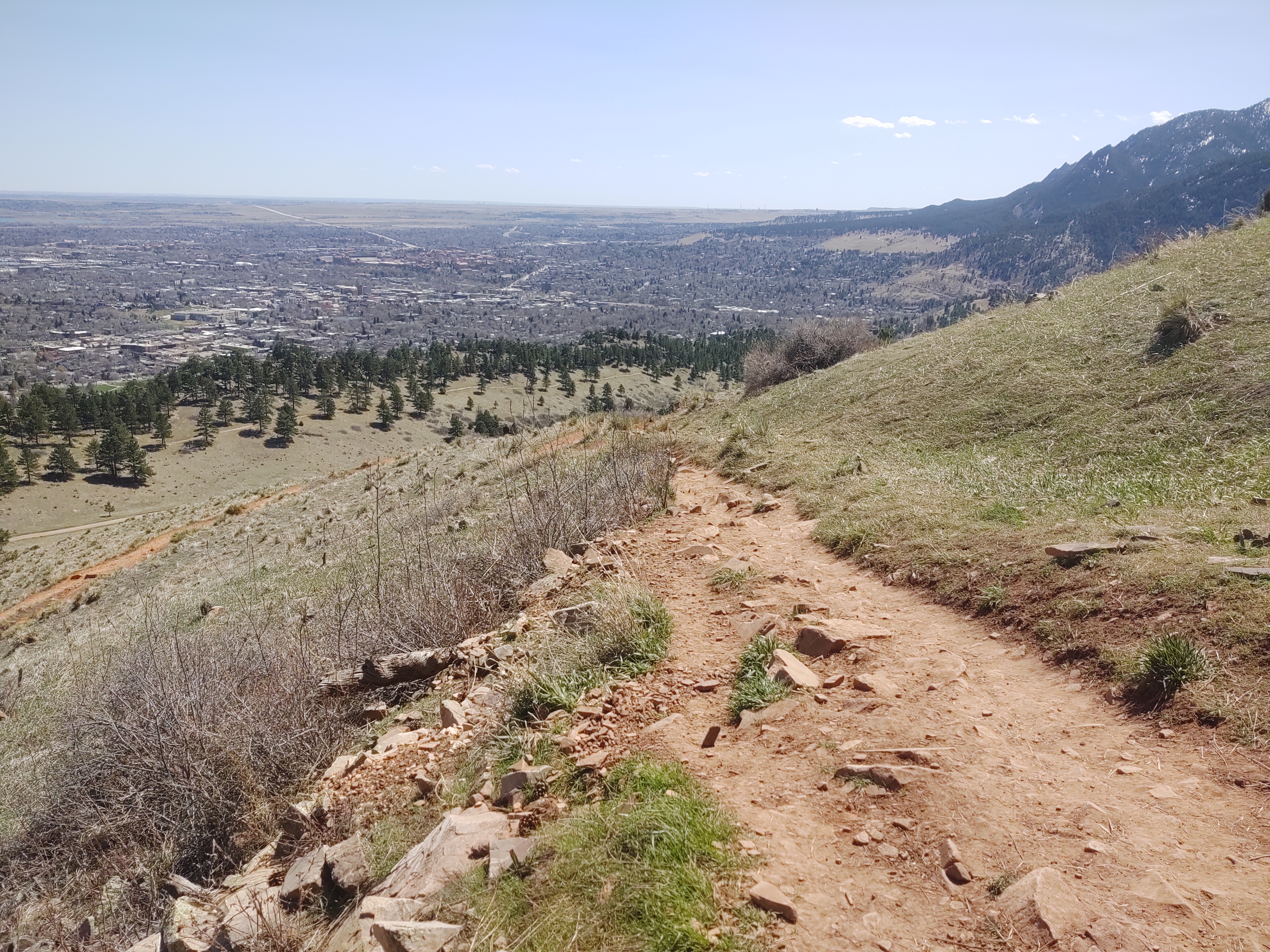 After washing all of the kitchenware that my landlord graciously gave us, I decided to go for a hike. Today it was Mount Sanitas. I put on my shoes walked out the front door and took a left towards the mountains. Within about 15 minutes, I reached the trailhead.