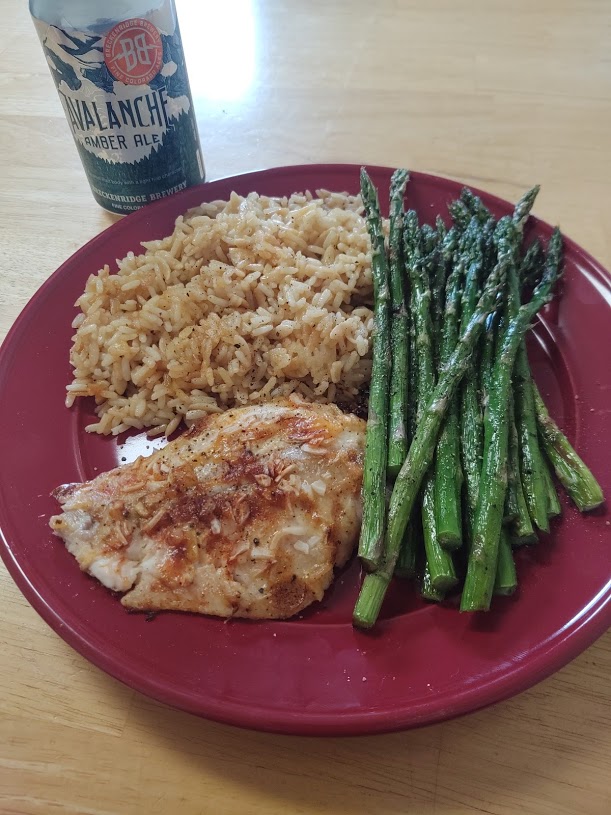 After the hike, I went home and cooked dinner. I have decided to cook a new plate every week. I want to learn to cook. Today I cooked rice, fish and some asparagus. I called my mother and asked her about a simple recipe for baked fish. She told me to use mayo, lime and some garlic, I put a couple other ingredients in there to spice it up.