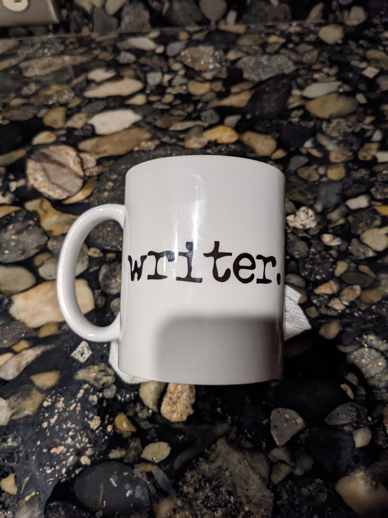 I am not a writer. Never have been, never will. Anything I write is riddled with errors, mistakes and the occasional confused “there” or was it “their” . In my entire school education I can count on one hand the times I received an “A” on anything longer than a page…Two of which were written in elementary school. My I was more interested in tools than pencils. How on earth did I end up with the mug you say … .well it was originally owned by my late grandfather, he was the writer, the trumpet player and philosopher. After he died we were assigned the duty of cleaning out his house to get it ready for sale. The saddest thing was chucking away inanimate objects that had a place in his life and now only lost memories. This included photos, furniture, electronics etc. They all participated in the life of Roland Chirico but in our eyes, they were trash, clutter and junk that got in the way of a quick sale of the house.  Lifetime of stuff chucked for a one time cash out. I don’t blame my family or myself for the destruction of all of his possessions. After all, the clutter of generations past would slow down the present. With all that in mind I saw this mug on top of the trash above the mismatch Tupperware and appliances too dirty for a new home. I thought of the irony it would be for the  Non-writer in the family to drink from the cup of writers. So I tossed it into the back of the truck. Figuring if it survives the ride home I’ll have myself a haunted cup of coffee. Perhaps, I thought his spirit will take the bitterness out of the dark roast. Despite my careless stowing of the mug, it survived. Every week or so I drink from it wondering if past cups drunk by my late grandfather inspired him to write or at least help him put up with his illiterate grandchild trying to dismantle his desk toys.