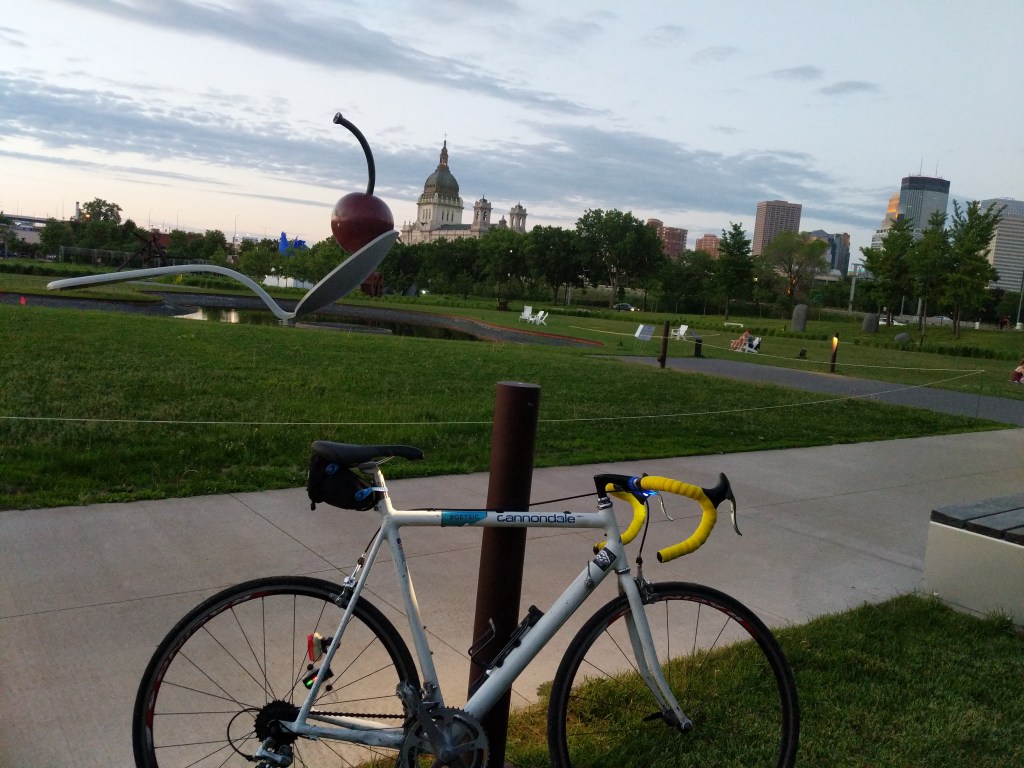 This is the white Cannondale. I think its a eighty’s bike. Frankly I don’t know its and old bike. I just know when it was old dad got it sometime before I was born. In high school I commuted on this bikes sister, the black Cannondale and father and I would go on majestic bike rides with the him on this bike and me on the black. The bike itself had the most annoying squeak. It was coming from the bottom bracket. I am disappointed that the bearings and the grease only lasted 40 years tsk tsk. In the chaos of the divorce I took this bike to college and beyond this bike would be my daily exercise for much of college and my time in upstate New York and then Minneapolis…….lets talk about Minneapolis.
