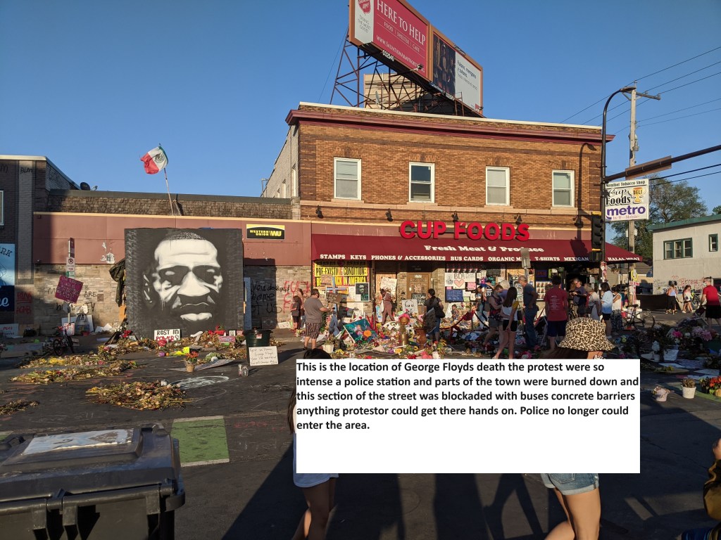 The officer then opens the back of the police car. That my friends was the first time I rode in back of a police car, it was the most uncomfortable ride in my life…..The partially disassembled bicycle poking my side, front, back, face, and foot didn’t help. There I was in back of the police car with the bike frame on top of me giving the best directions I could back to the hotel. There was a bit of conversation about the protest I just mentioned that hopefully it all gets resolved peacefully……… This was a week after the police station was burned down.